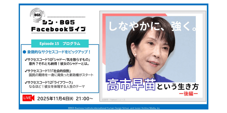 Episode15 「しなやかに、強く。高市早苗の生き方をBG5が読み解く「稀有な才能」」の後編ライ...